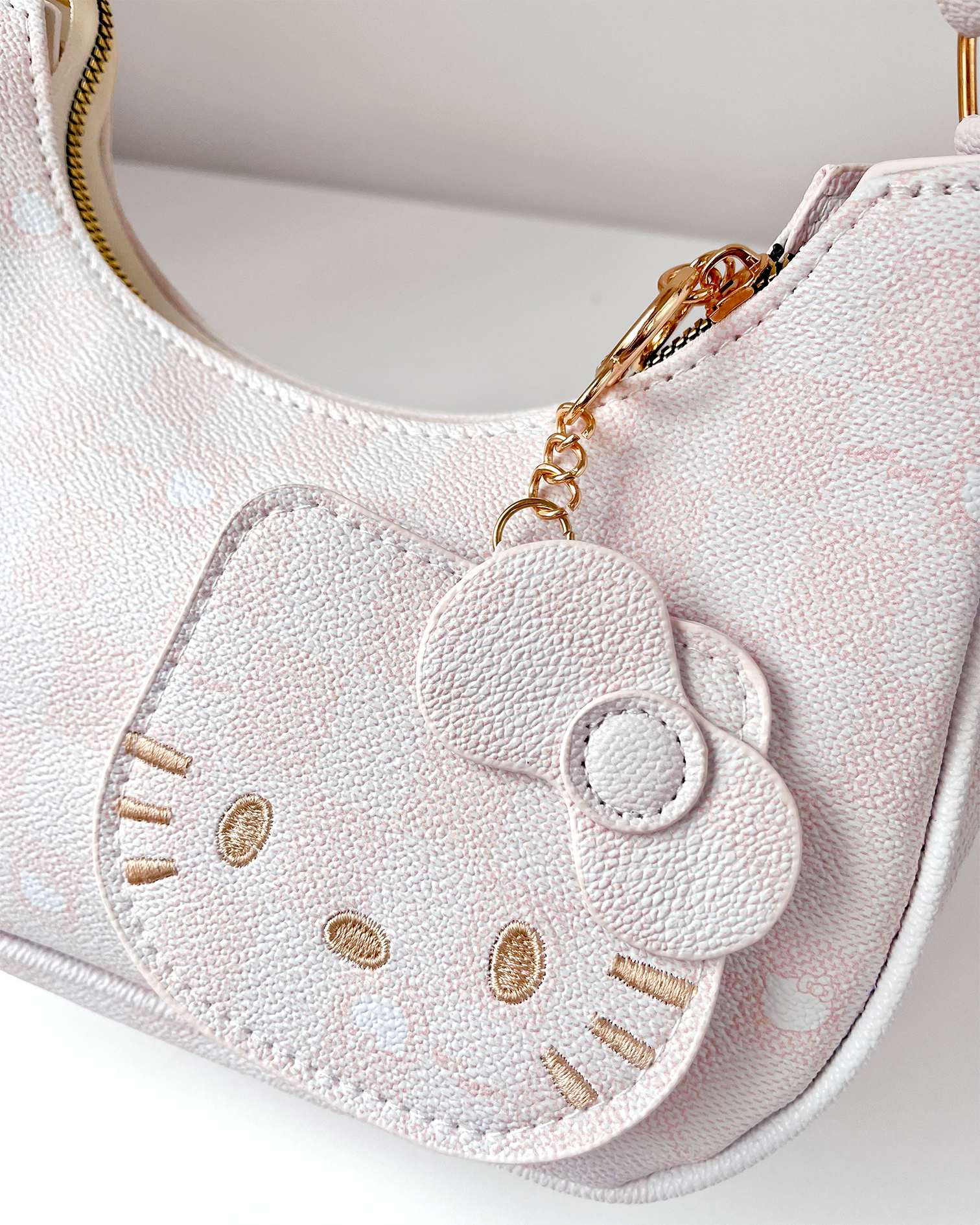 Una pieza tierna y femenina, perfecta para complementar tu look. Esta cartera en color rosado muy clarito viene con un charm inspirado en Hello Kitty, que le da un toque kawaii encantador. Aunque no es oficial, su diseño delicado la hace ideal para fans y amantes del estilo cute.
