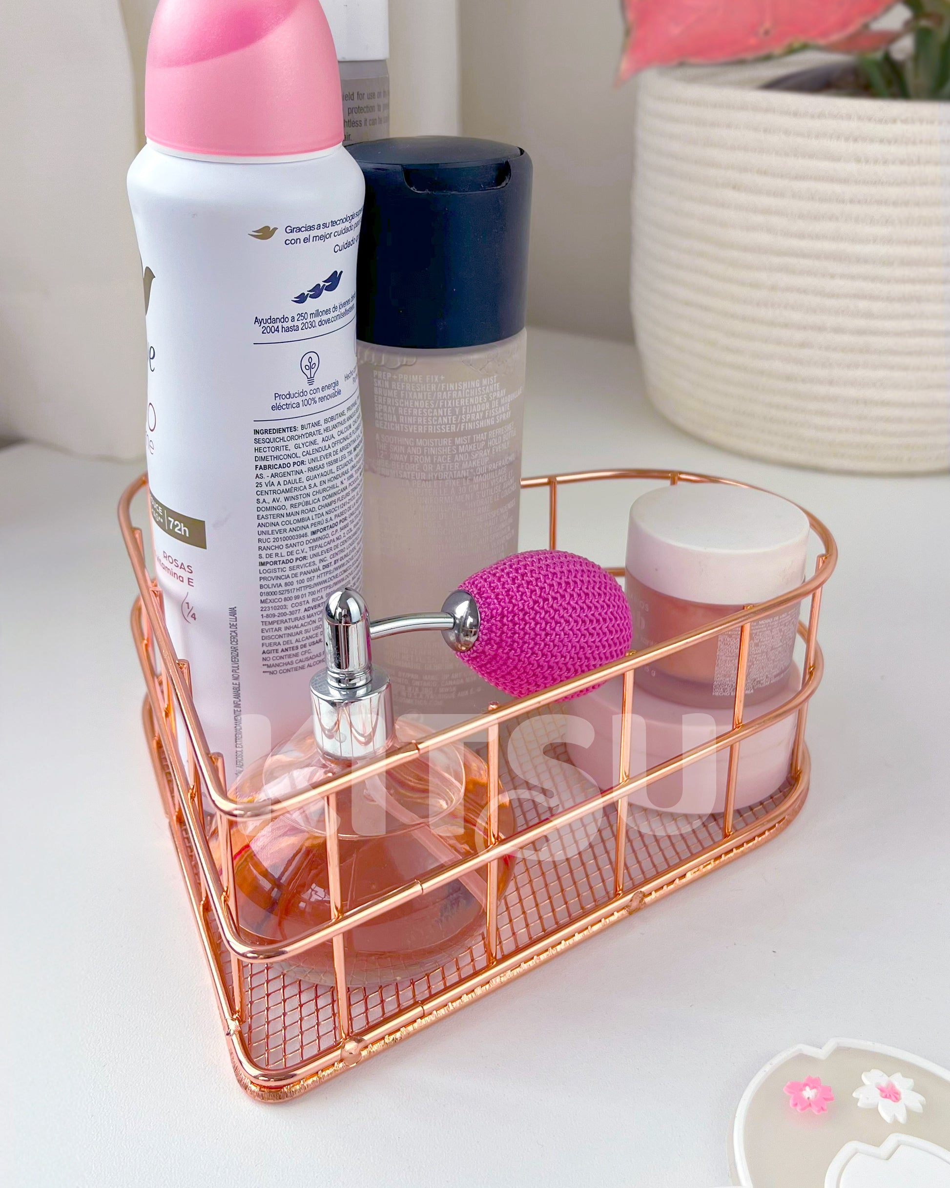 Mantén tu espacio ordenado con un toque romántico. Esta cesta metálica en forma de corazón viene en elegante color rose gold, ideal para organizar maquillaje, accesorios, papelería o pequeños detalles decorativos.