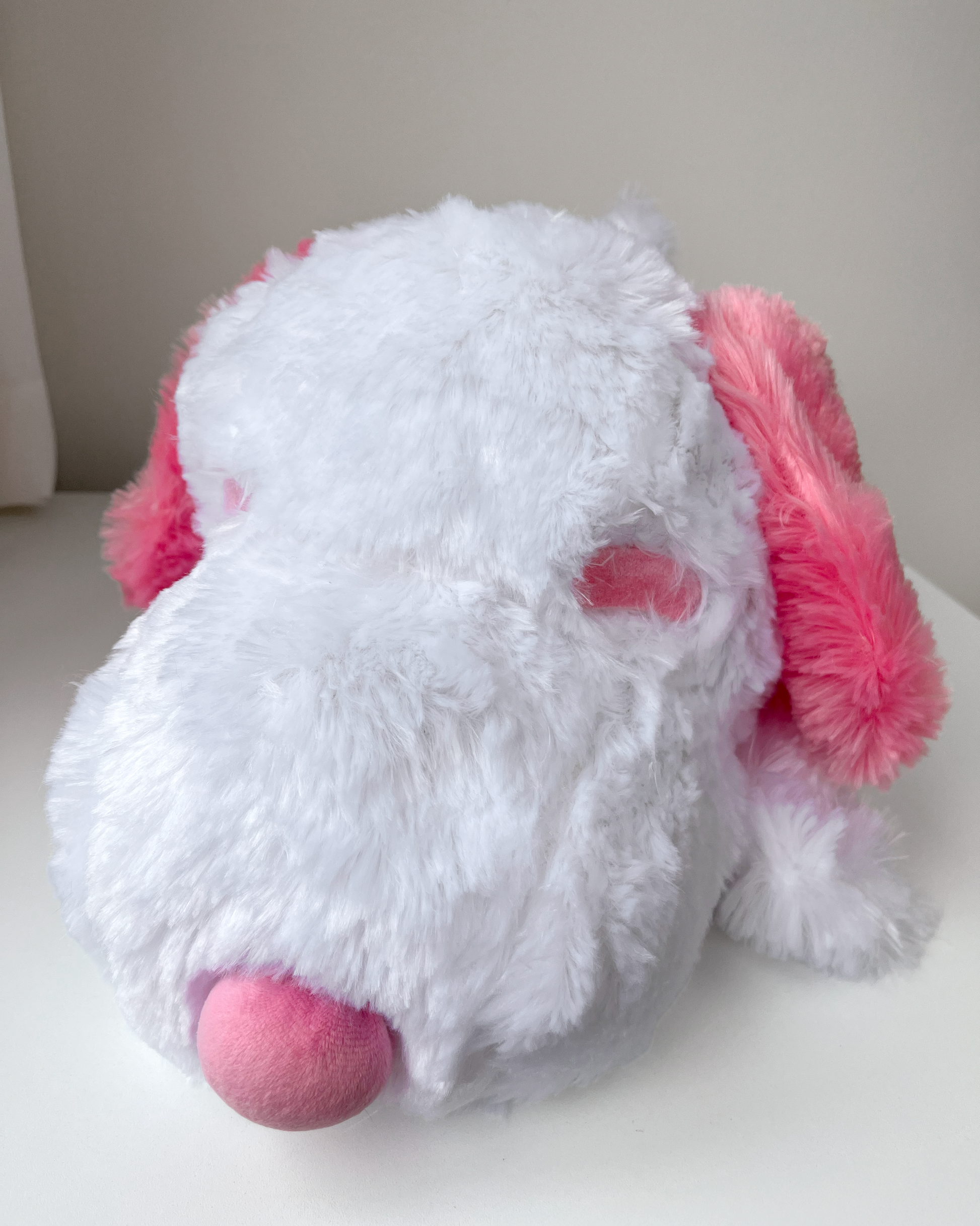 Un Snoopy único en su versión rosada y extra tierna 💕. Con sus 60 cm de largo, este peluche se luce echadito, muy peludito y suavecito, ideal para abrazar.